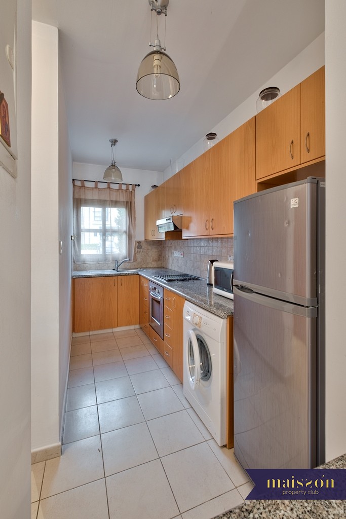Ground floor consists of a living room with open-plan fully equipped kitchen (fridge, dishwasher, washing machine, microwave oven, oven, toaster etc.) and guest toilet. Overall covered area is about 100 m. sq.