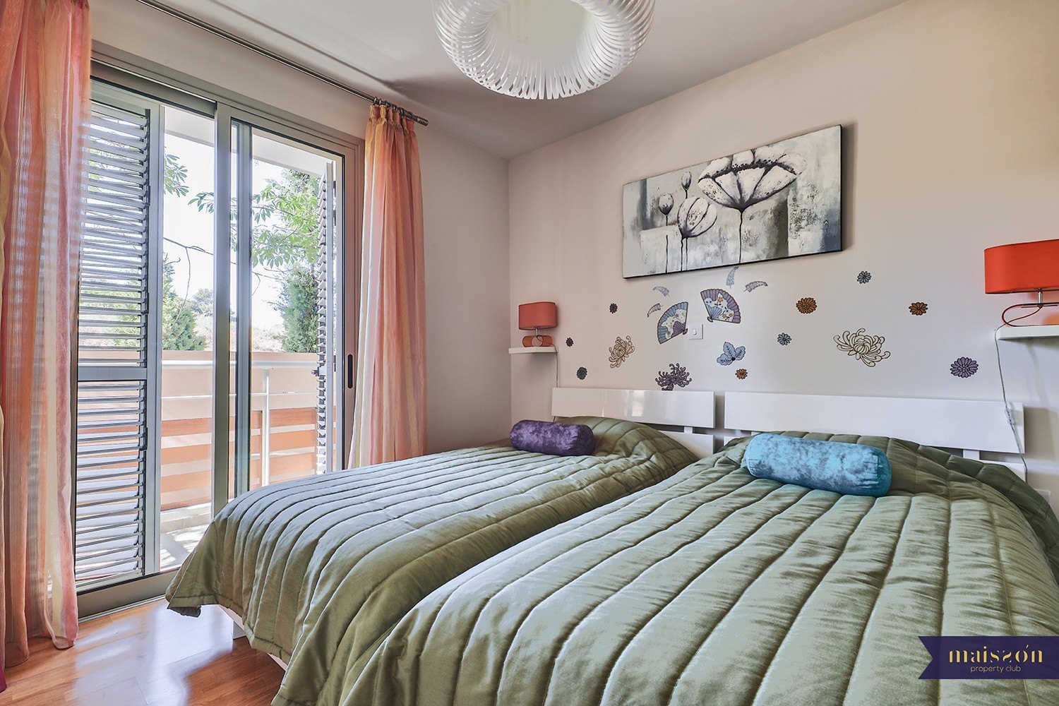 The apartment is located in a closed up complex with common swimming pool with neatly formed landscape in common green area within 100m from the coast and Plus sea beach. Coralli supermarket and dozens of cafes and restaurants are located in the block