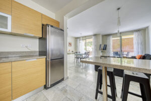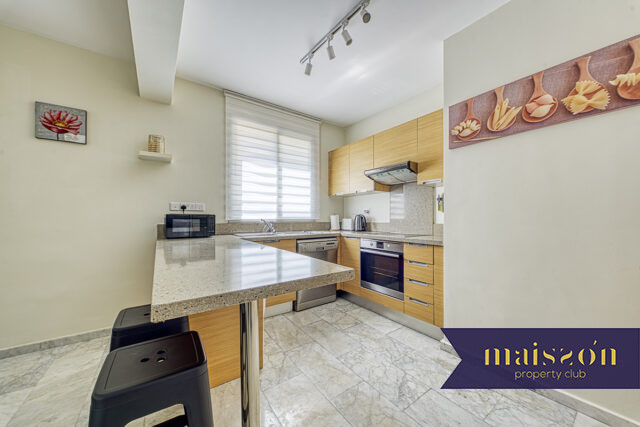 Кухня и гостиная открытого плана полностью меблированы и оборудованы качественной техникой и мебелью.