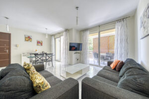 Квартира расположена в закрытом комплексе с коммунальным бассейном и красивой придомовой территорией в 100 метрах от моря и пляжа Plus Sea. Рядом с комплексом расположены супермаркет Coralli, всевозможные кафе и рестораны.