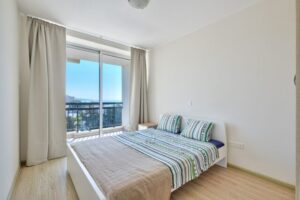 Квартира полностью меблирована и оборудована. Во всех комнатах есть кондиционеры. 2 спальни (в главной имеется санузел с душем), ванная комната (с душем), гостиная с открытого плана кухней, веранда с видом на море. Есть парковка.